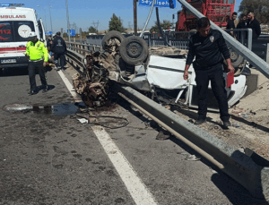 Konya’da takla atan otomobil direğe ve bariyerlere çarptı: 2 yaralı