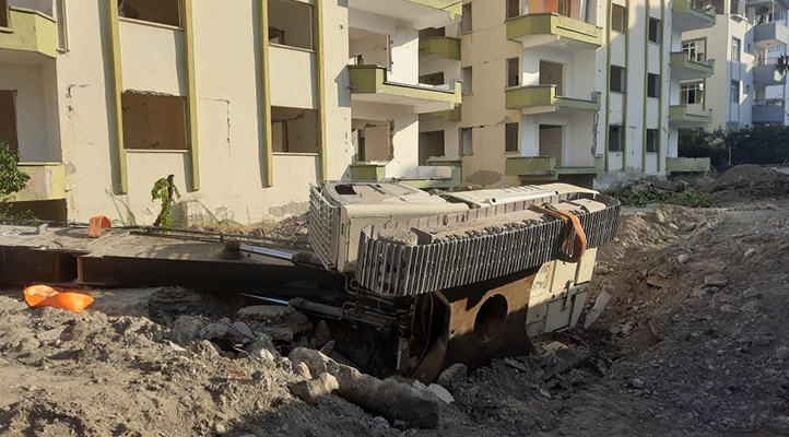 Hatay’da yer yarıldı, iş makinesi içine düştü